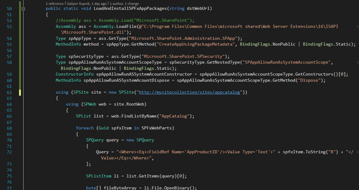 So, inside of our SPFxHelper helper class, which we made it in previous post, we create new LoadAndInstallSPFxAppPackages method which I want to share with you below: