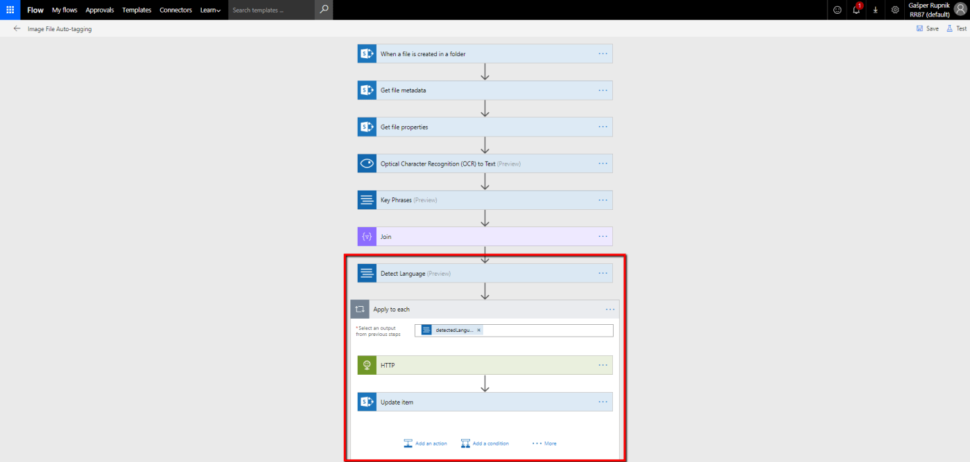 Last but not least you have to update Update item action with Language Value. Save Body from HTTP step into it.