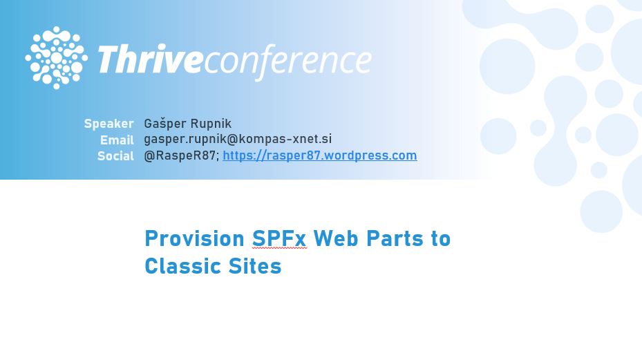 I had a speak yesterday about Provision SPFx Web Parts to Classic Sites and I want to share with you my presentation and all of my demos so you could test by yourself.