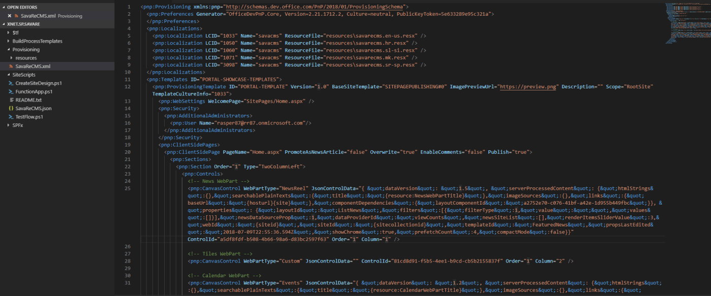 And this is for example our PowerShell script for our Web/Site template in SharePoint Online which could be called from Site Scripts via Flow. But we want more so we will use PnP Provisioning Engine.