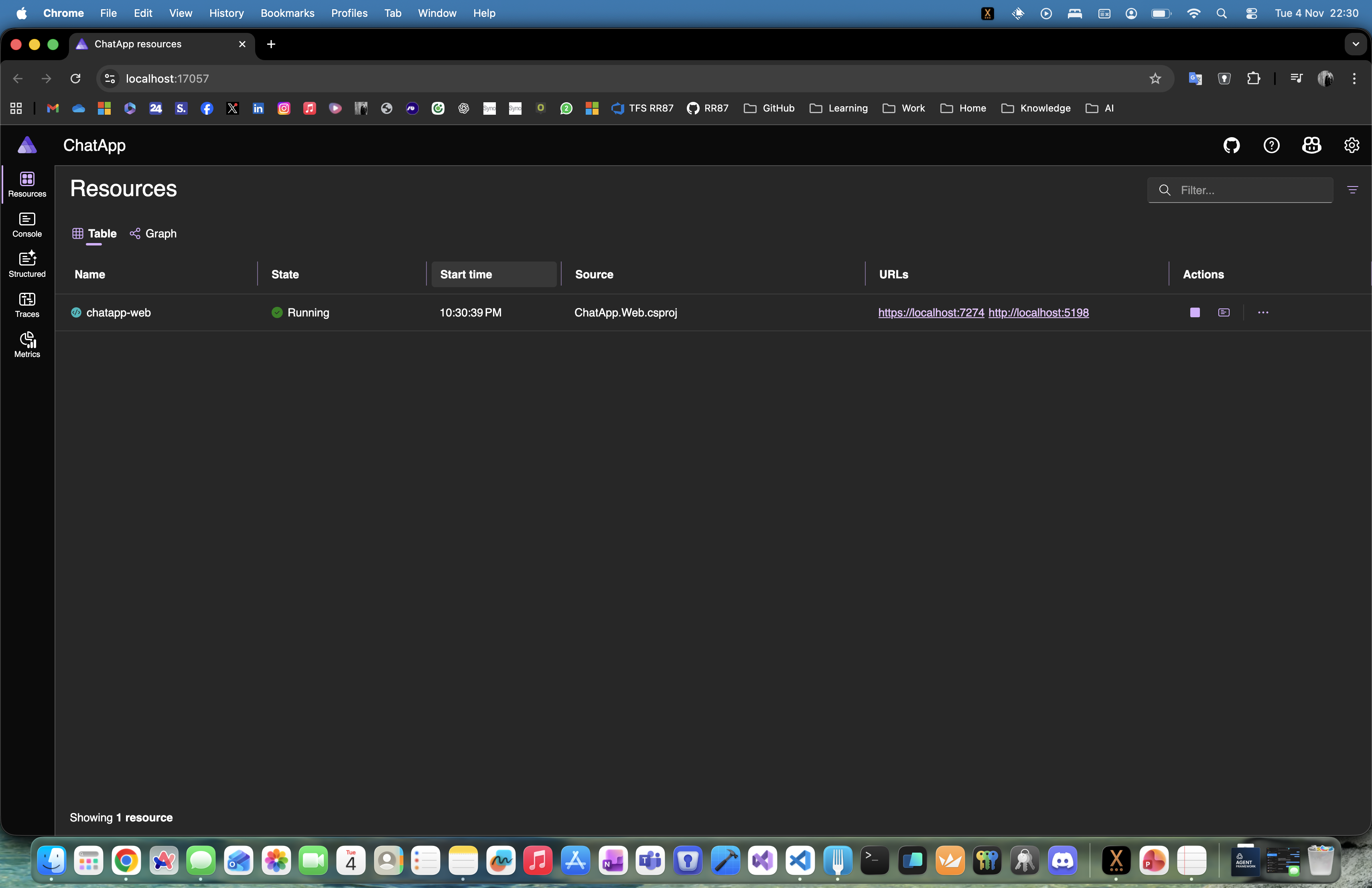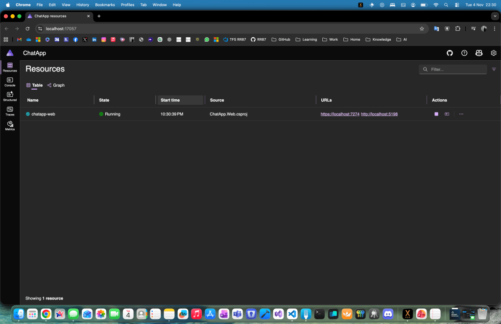 From here, click the web endpoint (for example, https://localhost:7274) to access your chat app.