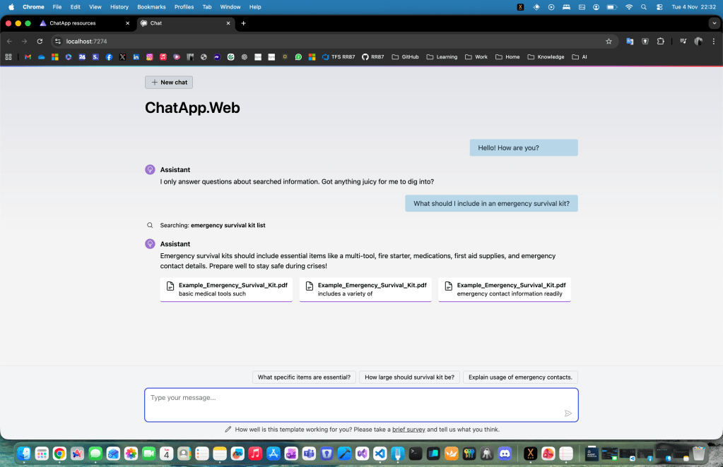This project shows how, in just minutes (or a few focused hours), your team can stand up a fully functional AI Chat App — capable of reading and reasoning over your internal documentation, surfacing references, and presenting them right in context.