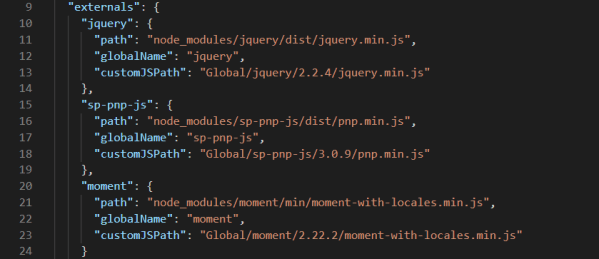 I’m pretty sure that you already know externals property from config.json file of your SPFx Web Parts. It is supposed to be for referencing external JS libraries from your SPFx Web Parts.